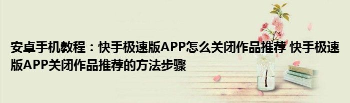 如今使用安卓手機的小伙伴們是越來越多了,那么安卓手機當中是有很多小技巧的,這些技巧很多小伙伴一般都是不知道如何來實用的,就好比最近就有很多小伙伴們想要知道快手極速版APP怎么關閉作品推薦 快手極速版APP關閉作品推薦的方法步驟 ,那么既然現在大家對于快手極速版APP怎么關閉作品推薦 快手極速版APP關閉作品推薦的方法步驟 都感興趣,小編就來給大家分享下關于快手極速版APP怎么關閉作品推薦 快手極速版APP關閉作品推薦的方法步驟 的一些信息吧。