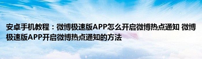 如今使用安卓手機(jī)的小伙伴們是越來(lái)越多了,那么安卓手機(jī)當(dāng)中是有很多小技巧的,這些技巧很多小伙伴一般都是不知道如何來(lái)實(shí)用的,就好比最近就有很多小伙伴們想要知道微博極速版APP怎么開(kāi)啟微博熱點(diǎn)通知 微博極速版APP開(kāi)啟微博熱點(diǎn)通知的方法 ,那么既然現(xiàn)在大家對(duì)于微博極速版APP怎么開(kāi)啟微博熱點(diǎn)通知 微博極速版APP開(kāi)啟微博熱點(diǎn)通知的方法 都感興趣,小編就來(lái)給大家分享下關(guān)于微博極速版APP怎么開(kāi)啟微博熱點(diǎn)通知 微博極速版APP開(kāi)啟微博熱點(diǎn)通知的方法 的一些信息吧。