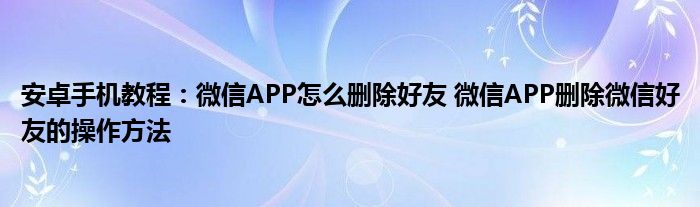 如今使用安卓手機的小伙伴們是越來越多了,那么安卓手機當中是有很多小技巧的,這些技巧很多小伙伴一般都是不知道如何來實用的,就好比最近就有很多小伙伴們想要知道微信APP怎么刪除好友 微信APP刪除微信好友的操作方法 ,那么既然現在大家對于微信APP怎么刪除好友 微信APP刪除微信好友的操作方法 都感興趣,小編就來給大家分享下關于微信APP怎么刪除好友 微信APP刪除微信好友的操作方法 的一些信息吧。