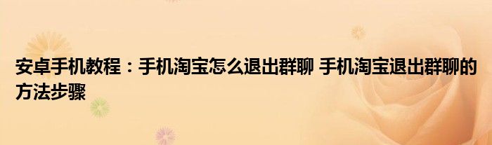 如今使用安卓手機的小伙伴們是越來越多了,那么安卓手機當中是有很多小技巧的,這些技巧很多小伙伴一般都是不知道如何來實用的,就好比最近就有很多小伙伴們想要知道手機淘寶怎么退出群聊 手機淘寶退出群聊的方法步驟 ,那么既然現在大家對于手機淘寶怎么退出群聊 手機淘寶退出群聊的方法步驟 都感興趣,小編就來給大家分享下關于手機淘寶怎么退出群聊 手機淘寶退出群聊的方法步驟 的一些信息吧。