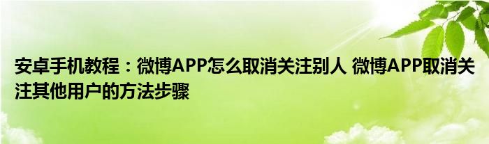如今使用安卓手機的小伙伴們是越來越多了,那么安卓手機當中是有很多小技巧的,這些技巧很多小伙伴一般都是不知道如何來實用的,就好比最近就有很多小伙伴們想要知道微博APP怎么取消關注別人 微博APP取消關注其他用戶的方法步驟 ,那么既然現在大家對于微博APP怎么取消關注別人 微博APP取消關注其他用戶的方法步驟 都感興趣,小編就來給大家分享下關于微博APP怎么取消關注別人 微博APP取消關注其他用戶的方法步驟 的一些信息吧。