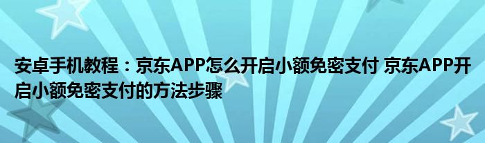 如今使用安卓手機(jī)的小伙伴們是越來(lái)越多了,那么安卓手機(jī)當(dāng)中是有很多小技巧的,這些技巧很多小伙伴一般都是不知道如何來(lái)實(shí)用的,就好比最近就有很多小伙伴們想要知道京東APP怎么開(kāi)啟小額免密支付 京東APP開(kāi)啟小額免密支付的方法步驟 ,那么既然現(xiàn)在大家對(duì)于京東APP怎么開(kāi)啟小額免密支付 京東APP開(kāi)啟小額免密支付的方法步驟 都感興趣,小編就來(lái)給大家分享下關(guān)于京東APP怎么開(kāi)啟小額免密支付 京東APP開(kāi)啟小額免密支付的方法步驟 的一些信息吧。