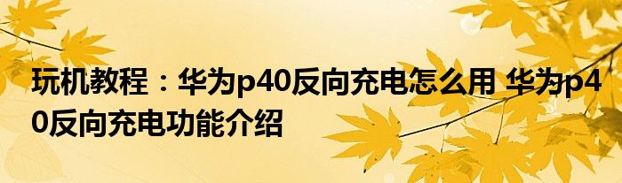 以上就是華為p40反向充電怎么用的全部?jī)?nèi)容了。更多精彩資訊攻略請(qǐng)關(guān)注卡飯教程。