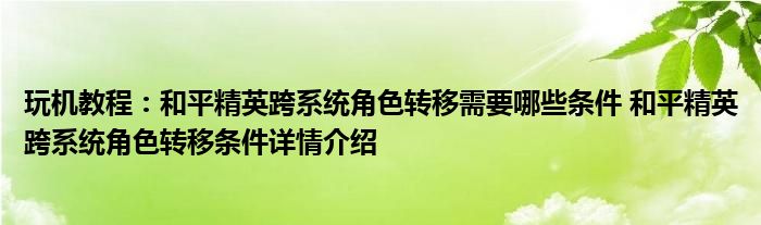 以上就是和平精英跨系統角色轉移需要哪些條件的全部內容,希望以上內容能幫助到朋友們。