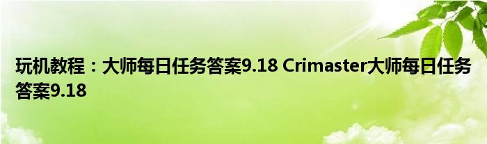 推薦閱讀:Crimaster大師每日任務答案匯總