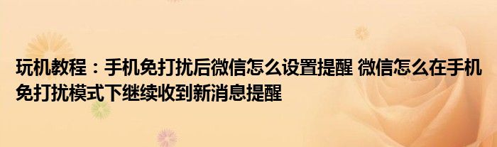 以上就是手機免打擾后微信怎么設置提醒的全部內容了,希望以上內容對您有所幫助!