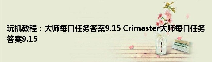 推薦閱讀:Crimaster大師每日任務答案匯總
