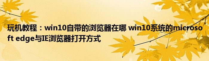 今天要來給大家介紹下win10自帶的瀏覽器在哪 win10系統的microsoft edge與IE瀏覽器打開方式,之所以要來給大家針對這個win10自帶的瀏覽器在哪 win10系統的microsoft edge與IE瀏覽器打開方式進行一個介紹的主要目的是現在很多小伙伴門對于win10自帶的瀏覽器在哪 win10系統的microsoft edge與IE瀏覽器打開方式了解是非常少的,都不知道具體的是怎么回事,那么感興趣的小伙伴可以看下下面的介紹哦。