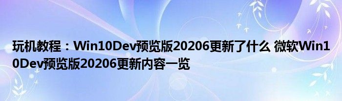 今天要來給大家介紹下Win10Dev預覽版20206更新了什么 微軟Win10Dev預覽版20206更新內容一覽,之所以要來給大家針對這個Win10Dev預覽版20206更新了什么 微軟Win10Dev預覽版20206更新內容一覽進行一個介紹的主要目的是現在很多小伙伴門對于Win10Dev預覽版20206更新了什么 微軟Win10Dev預覽版20206更新內容一覽了解是非常少的,都不知道具體的是怎么回事,那么感興趣的小伙伴可以看下下面的介紹哦。