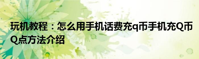 今天要來給大家介紹下怎么用手機話費充q幣手機充Q幣Q點方法介紹,之所以要來給大家針對這個怎么用手機話費充q幣手機充Q幣Q點方法介紹進行一個介紹的主要目的是現在很多小伙伴門對于怎么用手機話費充q幣手機充Q幣Q點方法介紹了解是非常少的,都不知道具體的是怎么回事,那么感興趣的小伙伴可以看下下面的介紹哦。