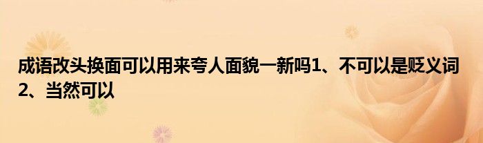 改頭換面,不是褒義詞。是貶義詞。一般形容表面改變,實際內里內心沒改變。只是做一些表面文章。這個詞不能用來夸贊人面貌一新。