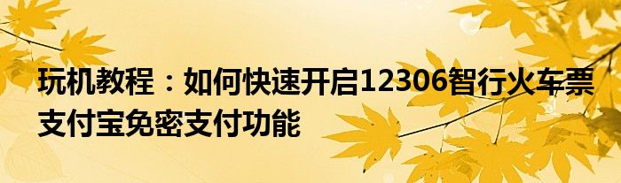 今天要來給大家介紹下如何快速開啟12306智行火車票支付寶免密支付功能,之所以要來給大家針對這個如何快速開啟12306智行火車票支付寶免密支付功能進行一個介紹的主要目的是現在很多小伙伴門對于如何快速開啟12306智行火車票支付寶免密支付功能了解是非常少的,都不知道具體的是怎么回事,那么感興趣的小伙伴可以看下下面的介紹哦。