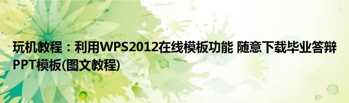 今天要來給大家介紹下利用WPS2012在線模板功能 隨意下載畢業答辯PPT模板(圖文教程),之所以要來給大家針對這個利用WPS2012在線模板功能 隨意下載畢業答辯PPT模板(圖文教程)進行一個介紹的主要目的是現在很多小伙伴門對于利用WPS2012在線模板功能 隨意下載畢業答辯PPT模板(圖文教程)了解是非常少的,都不知道具體的是怎么回事,那么感興趣的小伙伴可以看下下面的介紹哦。