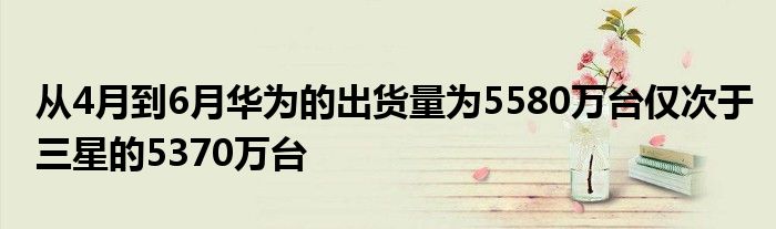 從4月到6月,華為的出貨量為5580萬(wàn)臺(tái),僅次于三星的5370萬(wàn)臺(tái)。