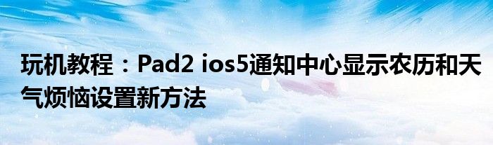 今天要來給大家介紹下Pad2 ios5通知中心顯示農歷和天氣煩惱設置新方法,之所以要來給大家針對這個Pad2 ios5通知中心顯示農歷和天氣煩惱設置新方法進行一個介紹的主要目的是現在很多小伙伴門對于Pad2 ios5通知中心顯示農歷和天氣煩惱設置新方法了解是非常少的,都不知道具體的是怎么回事,那么感興趣的小伙伴可以看下下面的介紹哦。