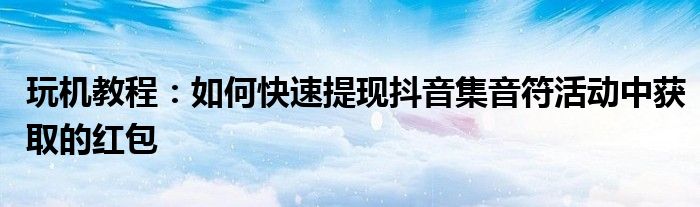 今天要來給大家介紹下如何快速提現抖音集音符活動中獲取的紅包,之所以要來給大家針對這個如何快速提現抖音集音符活動中獲取的紅包進行一個介紹的主要目的是現在很多小伙伴門對于如何快速提現抖音集音符活動中獲取的紅包了解是非常少的,都不知道具體的是怎么回事,那么感興趣的小伙伴可以看下下面的介紹哦。