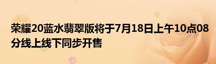 榮耀20系列今日再添新成員。榮耀20藍(lán)水翡翠版將于7月18日上午10點(diǎn)08分線上線下同步開售,新潮的翡翠配色讓這部手機(jī)更加討人喜愛。榮耀20藍(lán)水翡翠8GB+128GB版僅售2699元。
