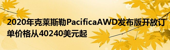 克萊斯勒本周表示,已經可以訂購Launch Edition配置的Pacifica AWD,起價為40,240美元(不含運費)。
