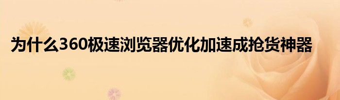 今天來說一下為什么360極速瀏覽器優化加速成搶貨神器用么做這方面的一些訊息,不少朋友對于為什么360極速瀏覽器優化加速成搶貨神器用么做這方面的信息頗感興趣的。小編今天就為此整理一些相關的訊息,希望