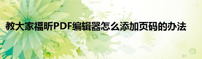 最近發現很多網友們對于福昕PDF編輯器怎么添加頁碼問題都非常關注,而我們現在的生活基本上也都離不開手機,想要了解最新的信息也都是直接在手機上進行了解,那么既然現在大家都想要了解福昕PDF編輯器怎么添加頁碼問題,小編今天也是特地到網上去搜集了一些與福昕PDF編輯器怎么添加頁碼相關的信息,那么在這里小編就來給大家一起分享出來吧,讓大家能夠了解到更多自己想要了解到的信息。