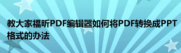 最近發(fā)現(xiàn)很多網(wǎng)友們對于福昕PDF編輯器如何將PDF轉(zhuǎn)換成PPT格式問題都非常關(guān)注,而我們現(xiàn)在的生活基本上也都離不開手機,想要了解最新的信息也都是直接在手機上進行了解,那么既然現(xiàn)在大家都想要了解福昕PDF編輯器如何將PDF轉(zhuǎn)換成PPT格式問題,小編今天也是特地到網(wǎng)上去搜集了一些與福昕PDF編輯器如何將PDF轉(zhuǎn)換成PPT格式相關(guān)的信息,那么在這里小編就來給大家一起分享出來吧,讓大家能夠了解到更多自己想要了解到的信息。