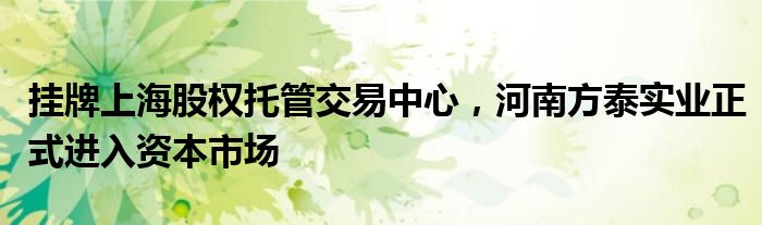 2015年8月4日,河南方泰實業有限公司在上海股權托管交易中心成功掛牌,宣布正式進入資本市場,對接更多的社會資源,成為陜縣首家上市掛牌的中小企業,步入一個健康、高效、規范的高速發展期。