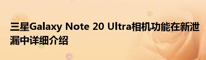 攝像頭性能始終是三星旗艦智能手機的主要關注點,今天的新視頻顯示,某些攝像頭功能將出現在Galaxy Note 20 Ultra中。