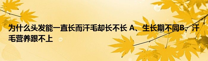 頭發的生長期長達3至7年,汗耗的生長期只有2個月。且頭發的生長速度也遠遠快于汗活,但頭發也不會無限期一直生長下去,生長期結束就會自動脫落,新頭發自然會長出來。