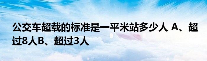 公交車載客標準:1平方米超過8人才算超載。目前,公交車沿用的是1987年頒布的《機動車安全運行技術條件》。按此標準,城市公交按每人0.125平方米核定載客數,也就是1平方米內不超過8人就不算超載。