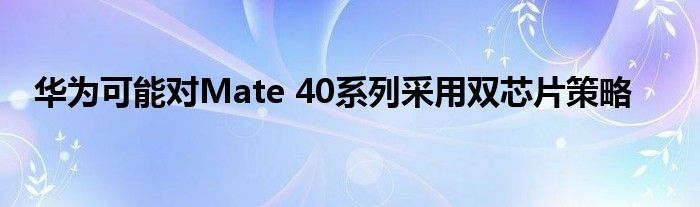 Twitter用戶@ RODENT950周六表示,受禁令影響,華為Mate 40系列可能會針對不同市場采用雙處理器解決方案。