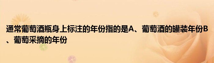 葡萄酒瓶上的年份是指葡萄采摘收獲的年份。葡萄經過加工、釀造、發酵等讓葡萄酒逐步成熟的過程(時間因葡萄品種、釀造手法等會有比較大的差異)再裝瓶包裝在市場上進行銷售。