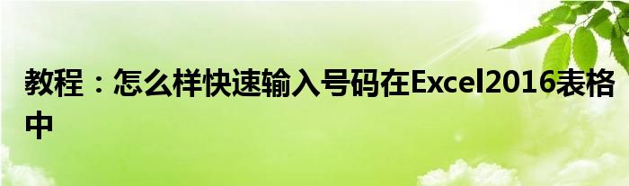 今天來說一下關于怎么樣快速輸入號碼在Excel2016表格中這方面的一些訊息,不少朋友對于怎么樣快速輸入號碼在Excel2016表格中這方面的信息頗感興趣的。小編今天就為此整理一些相關的訊息,希望對有需要的朋友有所幫助。