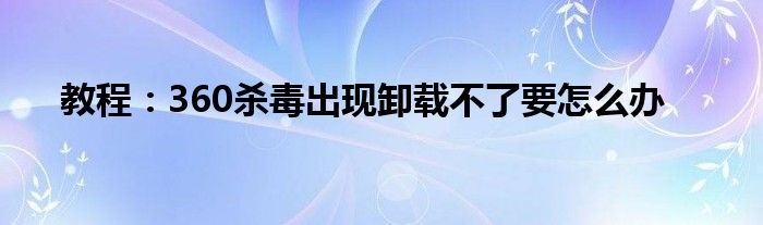 今天來說一下關于360殺毒出現卸載不了要怎么辦這方面的一些訊息,不少朋友對于360殺毒出現卸載不了要怎么辦這方面的信息頗感興趣的。小編今天就為此整理一些相關的訊息,希望對有需要的朋友有所幫助。