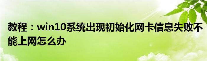 今天來說一下關于win10系統出現初始化網卡信息失敗不能上網怎么辦這方面的一些訊息,不少朋友對于win10系統出現初始化網卡信息失敗不能上網怎么辦這方面的信息頗感興趣的。小編今天就為此整理一些相關的訊息,希望對有需要的朋友有所幫助。