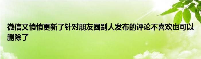 近日,有網友發現,微信又悄悄更新了,針對朋友圈別人發布的評論,不喜歡也可以刪除了。