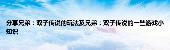 對(duì)于游戲愛好者來說,一些游戲攻略就是必備的開局利器了,近來發(fā)現(xiàn)不少網(wǎng)友對(duì)于兄弟:雙子傳說這款游戲的關(guān)注熱度頗高的,那么小編今天就針對(duì)兄弟:雙子傳說收集了一些相關(guān)的訊息 希望小編收集的這些訊息 能幫助到你。