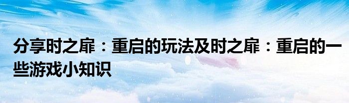 對于游戲愛好者來說,一些游戲攻略就是必備的開局利器了,近來發現不少網友對于時之扉:重啟這款游戲的關注熱度頗高的,那么小編今天就針對時之扉:重啟收集了一些相關的訊息 希望小編收集的這些訊息 能幫助到你。