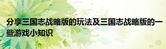 對于游戲愛好者來說,一些游戲攻略就是必備的開局利器了,近來發(fā)現不少網友對于三國志戰(zhàn)略版這款游戲的關注熱度頗高的,那么小編今天就針對三國志戰(zhàn)略版收集了一些相關的訊息 希望小編收集的這些訊息 能幫助到你。