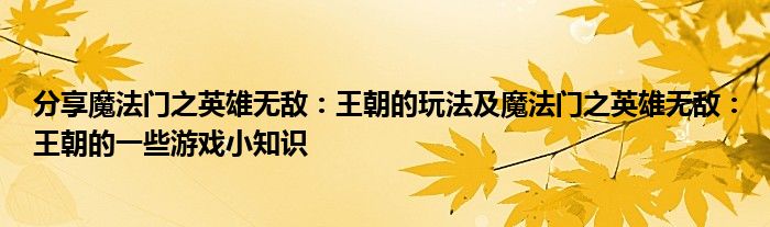 對于游戲愛好者來說,一些游戲攻略就是必備的開局利器了,近來發(fā)現(xiàn)不少網(wǎng)友對于魔法門之英雄無敵:王朝這款游戲的關(guān)注熱度頗高的,那么小編今天就針對魔法門之英雄無敵:王朝收集了一些相關(guān)的訊息 希望小編收集的這些訊息 能幫助到你。