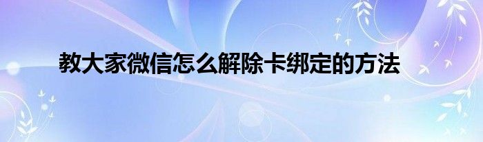今天小編來給大家針對這個教大家微信怎么解除卡綁定的方法的問題來進行一個介紹,畢竟當下也是有諸多的小伙伴對于教大家微信怎么解除卡綁定的方法這個問題非常的重視的,下面大家可以看下具體的詳情