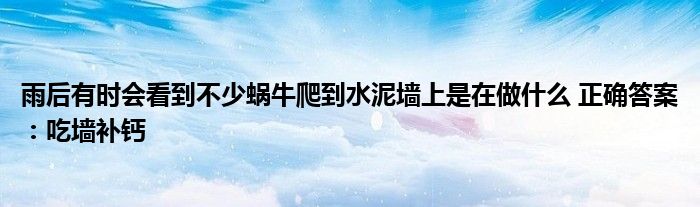 關于今日螞蟻莊園問題:雨后有時會看到不少蝸牛爬到水泥墻上是在做什么 不少朋友對于這方面的訊息都挺感興趣的。今天小編就收集了螞蟻莊園問題 雨后有時會看到不少蝸牛爬到水泥墻上是在做什么相關的訊息 希望對需要的朋友有所幫助