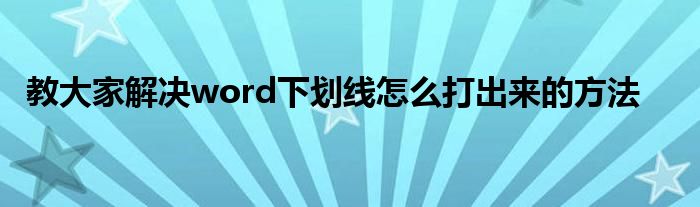 現在越來越多的小伙伴對于教大家解決word下劃線怎么打出來的方法這方面的問題開始感興趣,因為大家現在都是想要熟知,那么既然現在大家都想要知道教大家解決word下劃線怎么打出來的方法,小編今天就來給大家針對這樣的問題做個科普介紹吧。