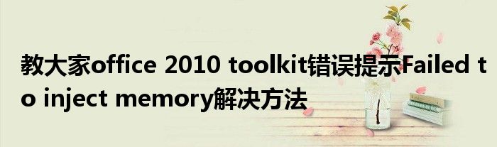 今天小編來給大家針對(duì)這個(gè)教大家office 2010 toolkit錯(cuò)誤提示Failed to inject memory解決方法的問題來進(jìn)行一個(gè)介紹,畢竟當(dāng)下也是有諸多的小伙伴對(duì)于教大家office 2010 toolkit錯(cuò)誤提示Failed to inject memory解決方法這個(gè)問題非常的重視的,下面大家可以看下具體的詳情