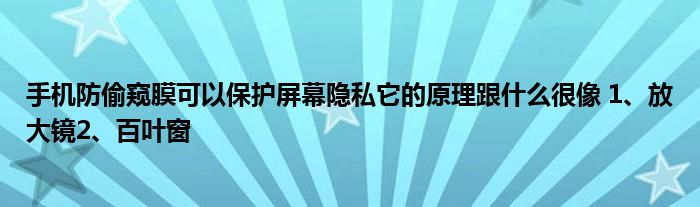 手機防偷窺膜可以保護屏幕隱私它的原理跟什么很像