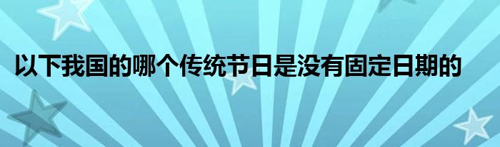 以上就是以下我國的哪個傳統節日是沒有固定日期的 推薦,相信通過以下我國的哪個傳統節日是沒有固定日期的 這篇文章能幫到你,也歡迎對游戲很感興趣小伙伴們一起來探討。