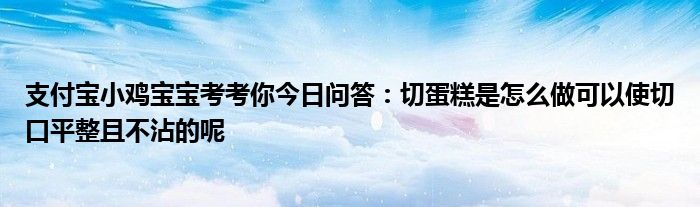 支付寶小雞莊園每日答題的答案是很多小伙伴們現在每天都必做的一件事,為自己的小雞賺取飼料,那么答題的過程當中很多小伙伴就會不知道答案,就好比今日的問題為支付寶小雞寶寶考考你今日問答:切蛋糕是怎么做可以使切口平整且不沾的呢,那么大家不知道答案的情況下要是答錯了就領取不到飼料了,不過這里大家不需要擔心,小編就來給大家收集下支付寶小雞寶寶考考你今日問答:切蛋糕是怎么做可以使切口平整且不沾的呢的答案,下面分享給大家吧。