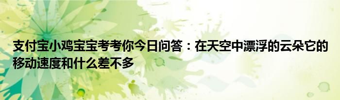 支付寶小雞莊園每日答題的答案是很多小伙伴們現在每天都必做的一件事,為自己的小雞賺取飼料,那么答題的過程當中很多小伙伴就會不知道答案,就好比今日的問題為支付寶小雞寶寶考考你今日問答:在天空中漂浮的云朵它的移動速度和什么差不多,那么大家不知道答案的情況下要是答錯了就領取不到飼料了,不過這里大家不需要擔心,小編就來給大家收集下支付寶小雞寶寶考考你今日問答:在天空中漂浮的云朵它的移動速度和什么差不多的答案,下面分享給大家吧。