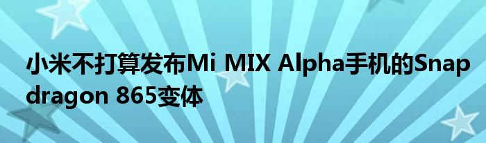 看來,小米Mi MIX Alpha不會有Snapdragon 865的后續行動