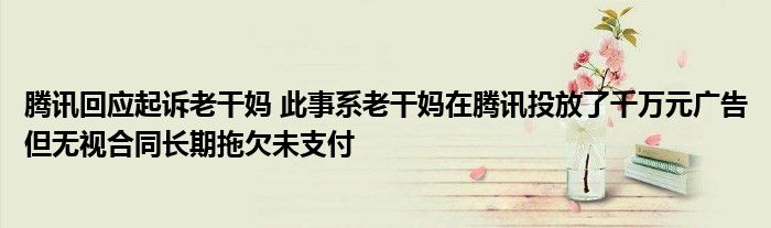 【#騰訊回應起訴老干媽# :老干媽投放廣告,拖欠廣告款】6月30日訊,有關騰訊起訴貴州老干媽并要求法院凍結后者千萬資產的具體原因,今天下午,騰訊回應稱,此事系老干媽在騰訊投放了千萬元廣告,但無視合同長期拖欠未支付,騰訊被迫依法起訴,申請凍結了對方應支付的欠款金額。