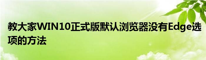 現在越來越多的小伙伴對于教大家WIN10正式版默認瀏覽器沒有Edge選項的方法這方面的問題開始感興趣,因為大家現在都是想要熟知,那么既然現在大家都想要知道教大家WIN10正式版默認瀏覽器沒有Edge選項的方法,小編今天就來給大家針對這樣的問題做個科普介紹吧。